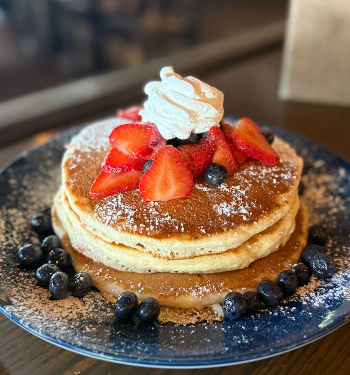 3 Fluffy Pancakes, Macerated Seasonal Berries, Whipped Cream, Side of Butter